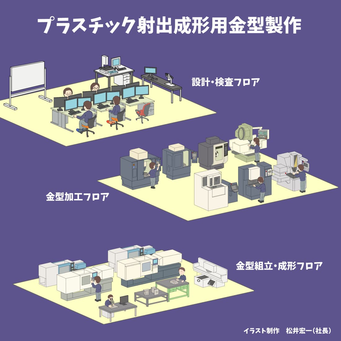 プラスチック射出成形用の金型を設計・製作しています。